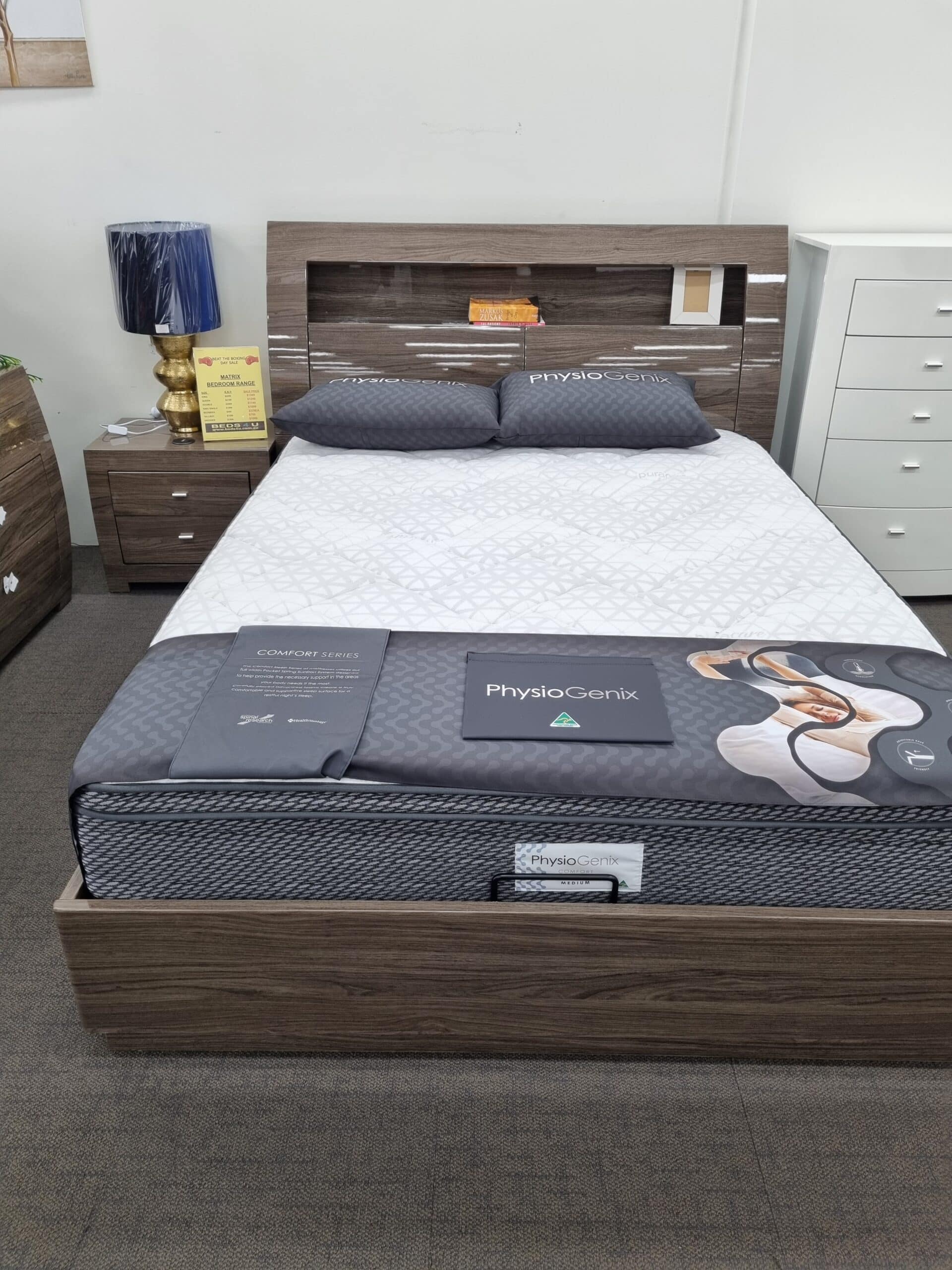 Introducing the Matrix Gas Lift bed, a perfect blend of style and functionality. Designed with high gloss wood veneer, this bed exudes elegance and sophistication. The gas lift feature allows for effortless lifting, providing convenient storage space underneath. Available in your choice of white or chestnut finishes, the Matrix Gas Lift bed seamlessly complements any bedroom decor.